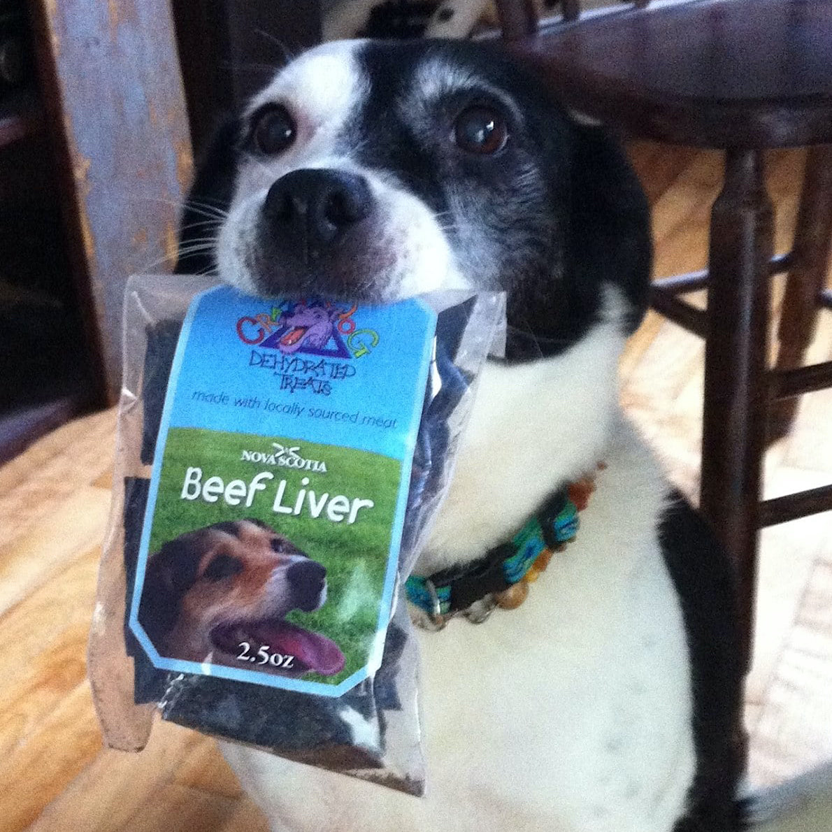 Nova Scotian beef liver dehydrated dog treats. Made with locally sourced meat. 2.5oz.